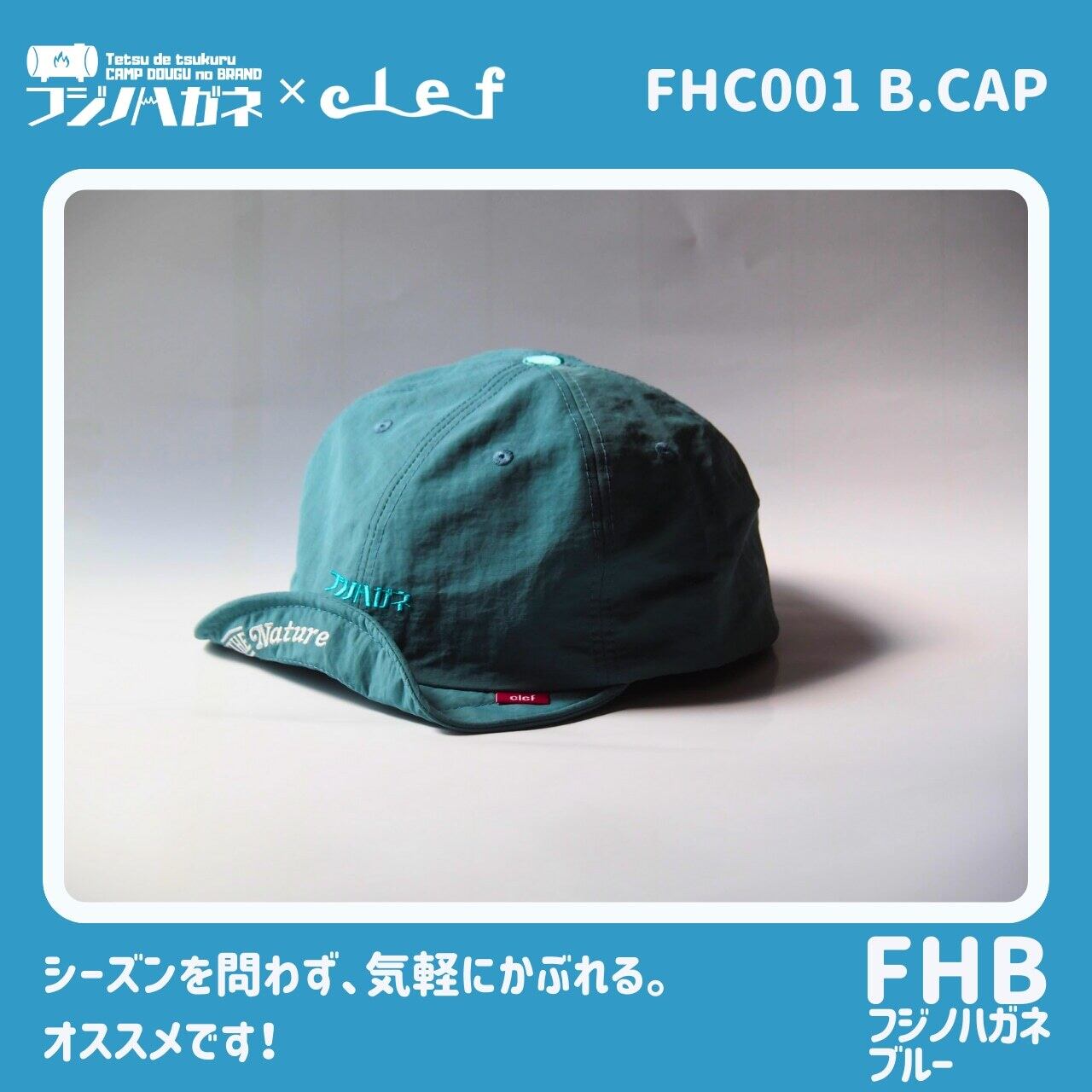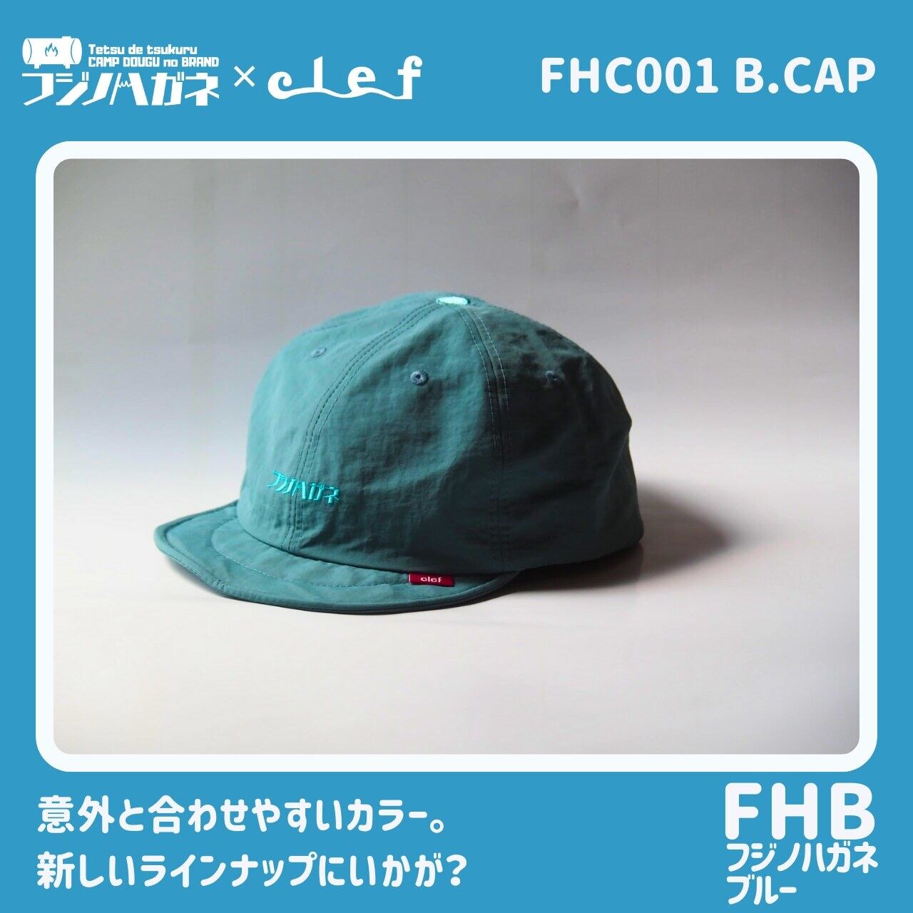 アウトドアキャップブランド CLEF(クレ) と、岡山発アウトドアブランド フジノハガネ による特別コラボモデル。