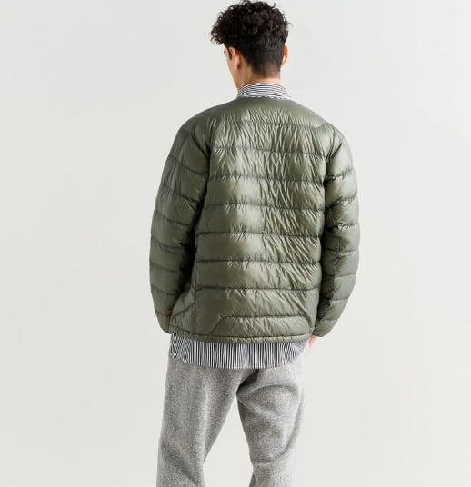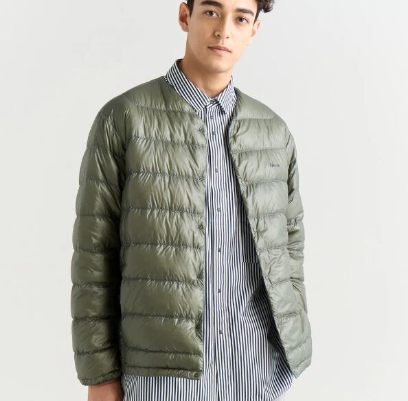 表裏には10dnの非常に薄手で柔らかなリサイクルナイロンを使用し、ダウンには650FPのリサイクルダウンを採用。軽やかな着心地ながら、しっかりとした保温性を備えたエコフレンドリーモデルです。寒さが気になる時期の温度調節にもぴったり。