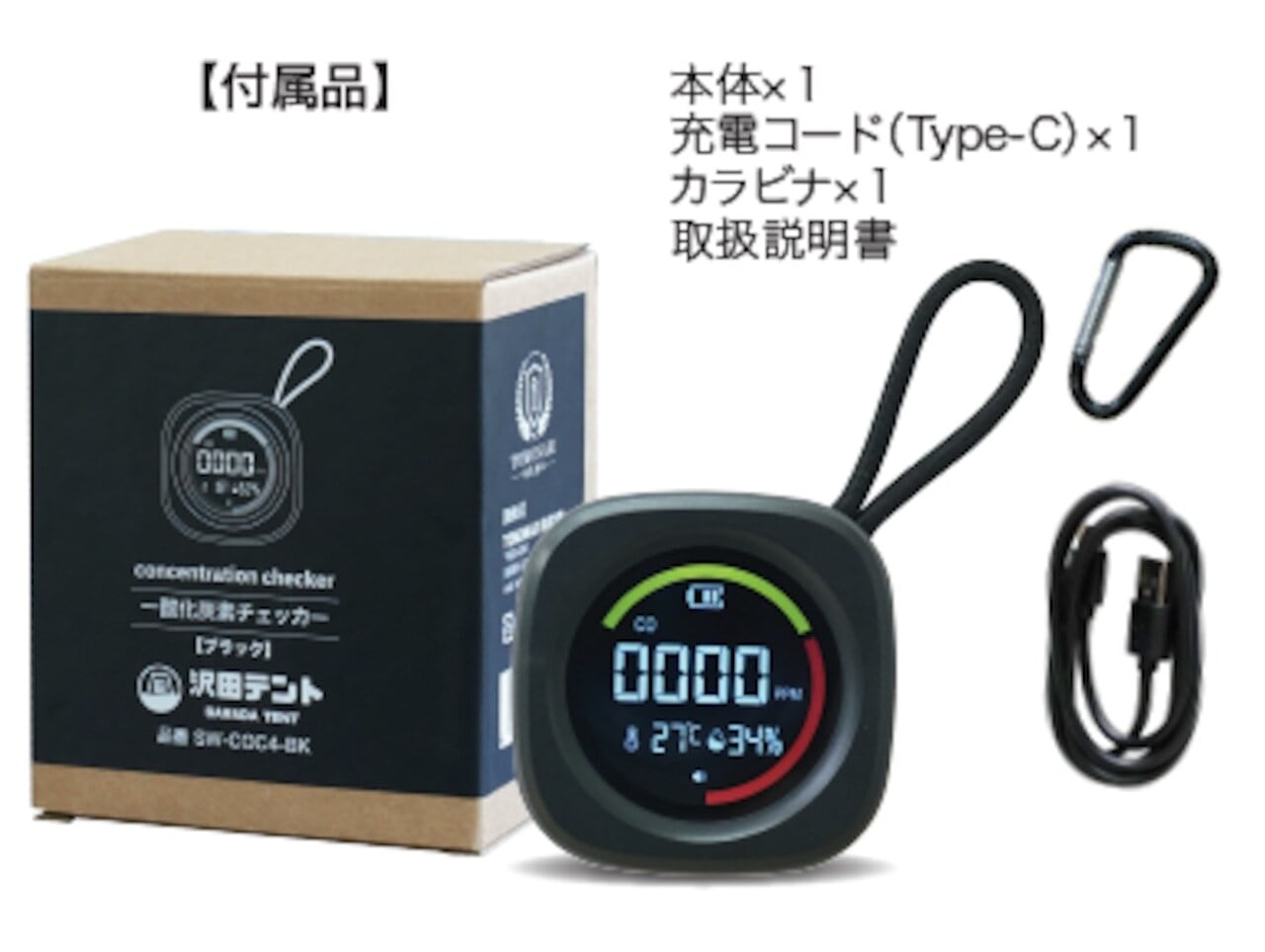【沢田テント】一酸化炭素チェッカー(ショップ限定商品)(ブラックSW‐COC4‐BK)
