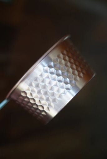 今までのÆndは全て伝統的なハンマートーンで製作しましたが、新たに日本の伝統的な網代模様で350mlサイズを製作しました。