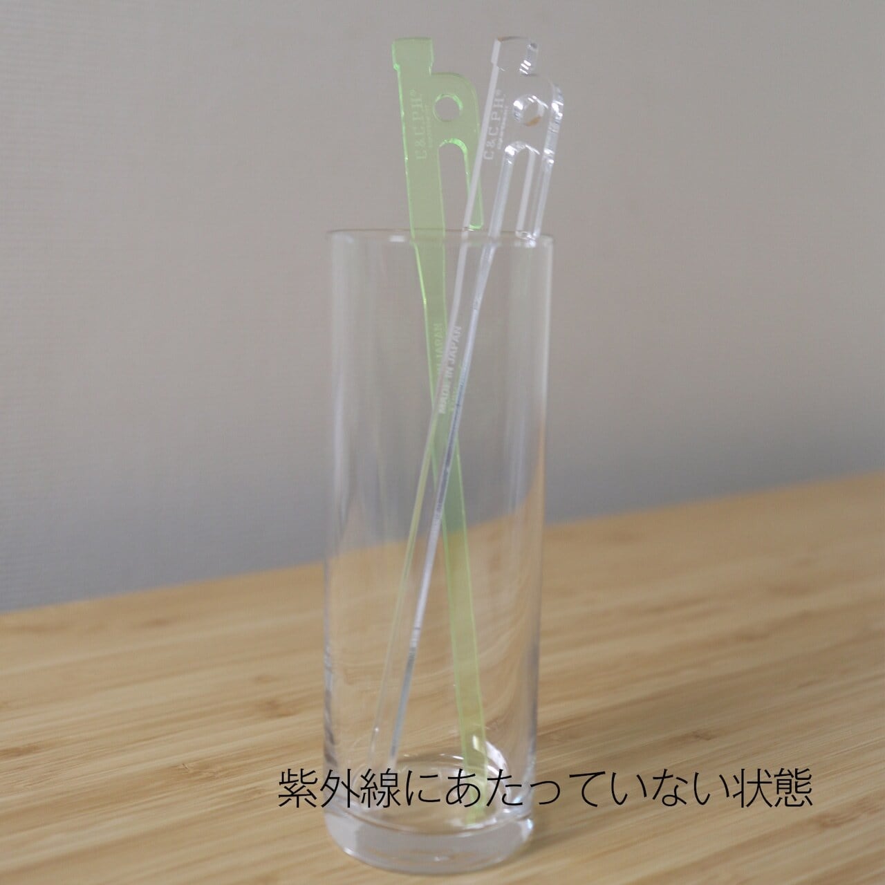 家の中や、光が遮断される場所では無色透明なカラーから、