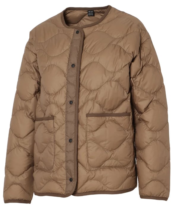 ライナーダウンはオニオンキルトステッチを施し、シンプルながらも存在感のあるデザインに。マットな質感と大きめのリップ柄が特徴のナイロン100%生地を使用し、着心地も見た目も上質です。