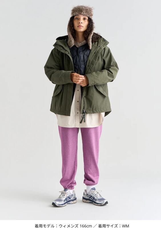 シェルとライナーはそれぞれ単体でもアウターとして着用できるため、気温やシーンに合わせて使い分けが可能。ウィメンズではテープ付きの引き手で着脱できる仕様になっており、扱いやすさにも配慮しました。