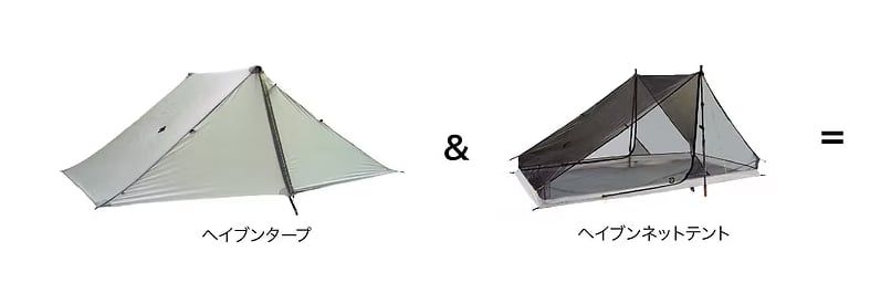 または、ヘイブンネットテントと一緒に使用して、1kg未満で2人用の広々とした超軽量