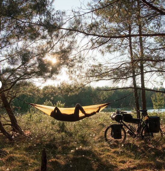 Elfy Hammockは、ハンモック本体・ストラップ・収納バッグが一体化されたオールインワンモデル。