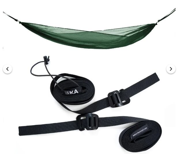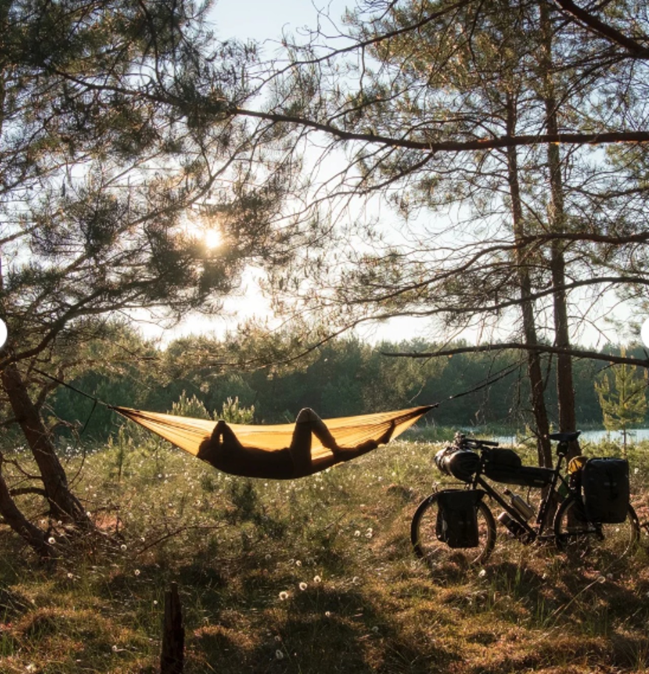 Elfy Hammockは、ハンモック本体+Eco-Straps(G-hook付)+収納バッグがすべて1つに収まった、究極のオールインワンULハンモックセット。