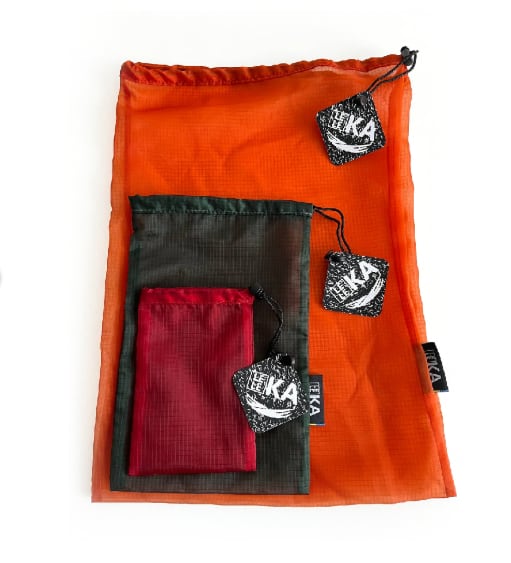 LELEKAらしいサステナブルな取り組みから生まれた、軽量・コンパクトな3サイズセットの収納サック。