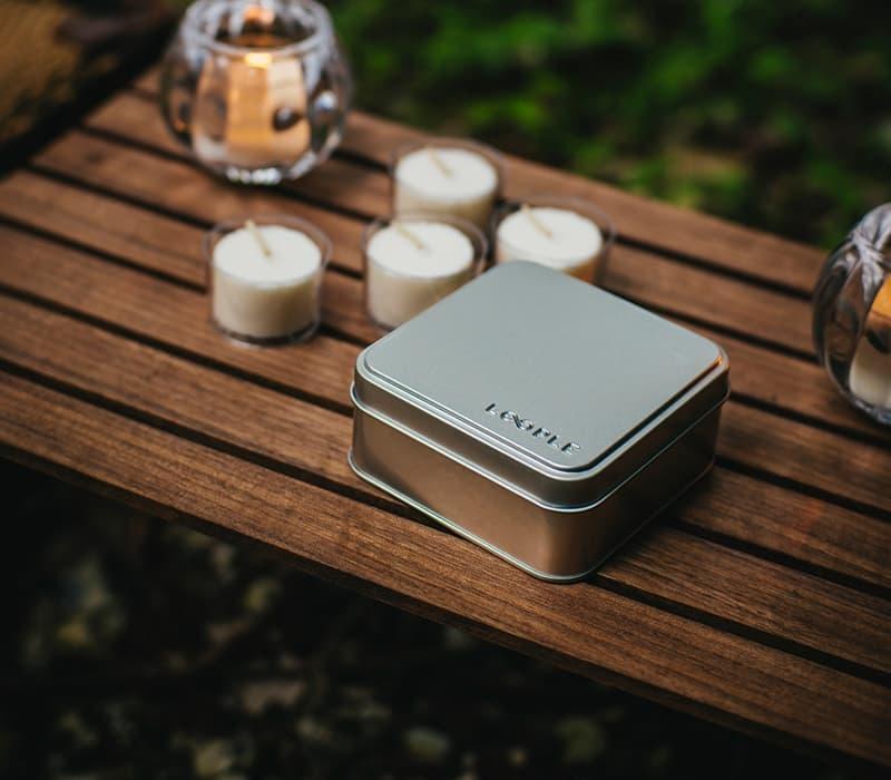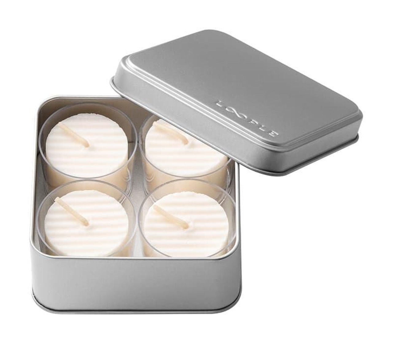LOOPLE「カップキャンドルBOX」は、「ハイパワーカップキャンドル」「スタンダードカップキャンドル」 が4個ぴったり収まる専用ケースです。