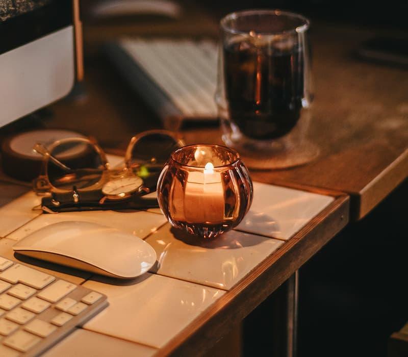 屋内用よりも大きな炎で、クリアカップがあかりを遮りません。