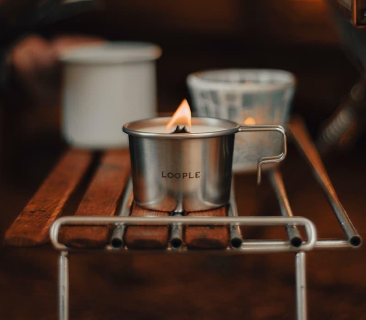 「シェラカップアロマキャンドル」は、炎・香り・音でキャンプの夜を豊かにするアウトドアキャンドルです。