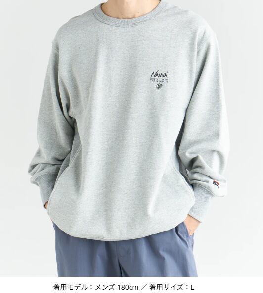 柔らかく軽い着心地が魅力のナンガのスウェットシリーズで、毎日気兼ねなく着られるデイリーウェアとして仕立てています。動きやすいフリーダムスリーブやサイドのリブパネル、便利なポケットなど、ストレスの少ない快適な着用感も特徴です。