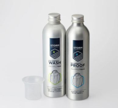 洗剤と撥水剤を専用の投入口にセットするだけで、洗濯から撥水処理までを一度に行える「ワンウォッシュサイクル」に対応。時間や水の使用を抑えながら、ウェア本来の防水性・透湿性を効果的に回復させます。また、環境への配慮から、PFC(過フッ素化合物類)を一切使用しておらず、地球に優しい成分で構成されています。さらに、マイクロプラスチックによる海洋汚染を防ぐため、容器にはリサイクル可能なアルミボトルを採用しました。