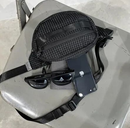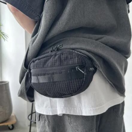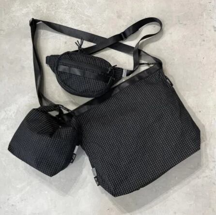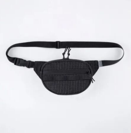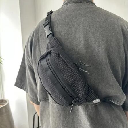リップストップ生地の特徴である格子柄部分に反射糸を使った素材を使用したファニーパック。