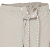 太ももまわりはゆったりと、裾にかけてすっきりとしたテーパードシルエット。膝にはタックを入れ、動きやすさにも配慮した設計です。計5つのポケットを備え、日常から旅行、アウトドアまで幅広く対応。撥水加工を施しているため、天候の変化にも安心です。