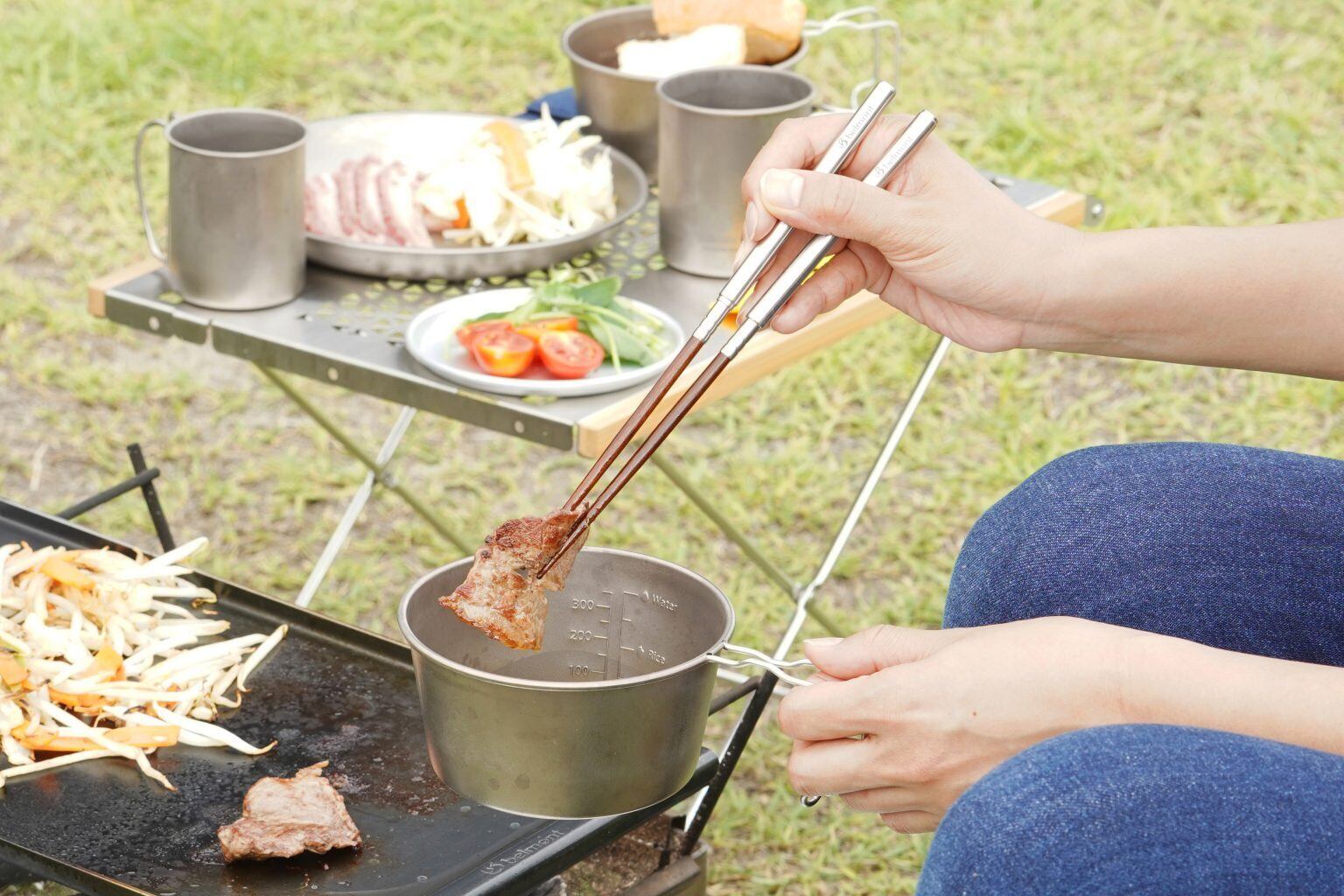 調理の際は菜箸として使い、食事の際は22cmのお箸として使えます。収納はフィールドスティックと同じ125mmに収まり、一本あると便利なアイテムです。