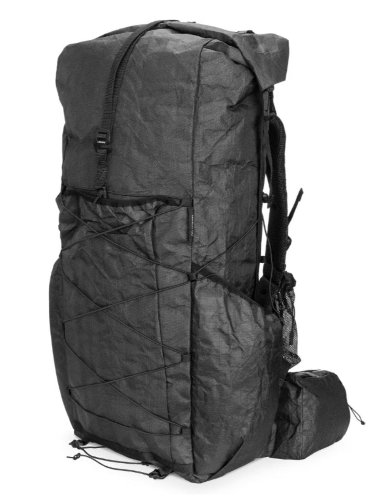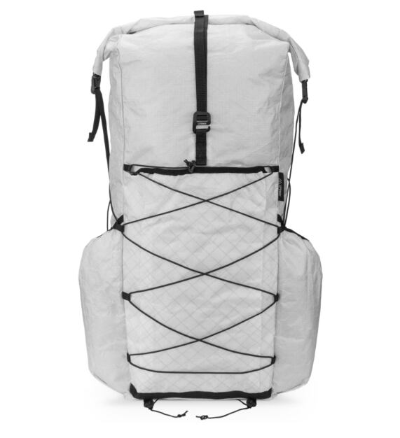 BIGGIE PACK ULTRAのデザインはとてもシンプルで、美しく無駄がなく、容量45Lのフレームレスバックパックです。基本デザインは「ELEMENTUM PACK」を踏襲し、各所に補強を施した作りになっていますが、大きな違いが2点あります。