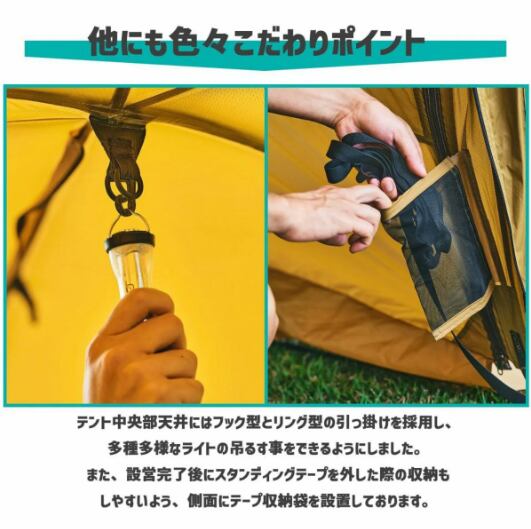 ・インナーフロア:210Dポリエステル/PU, 耐水圧2000mm