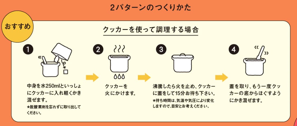 ●脱酸素剤を封入しています。調理前に取り除いてください。