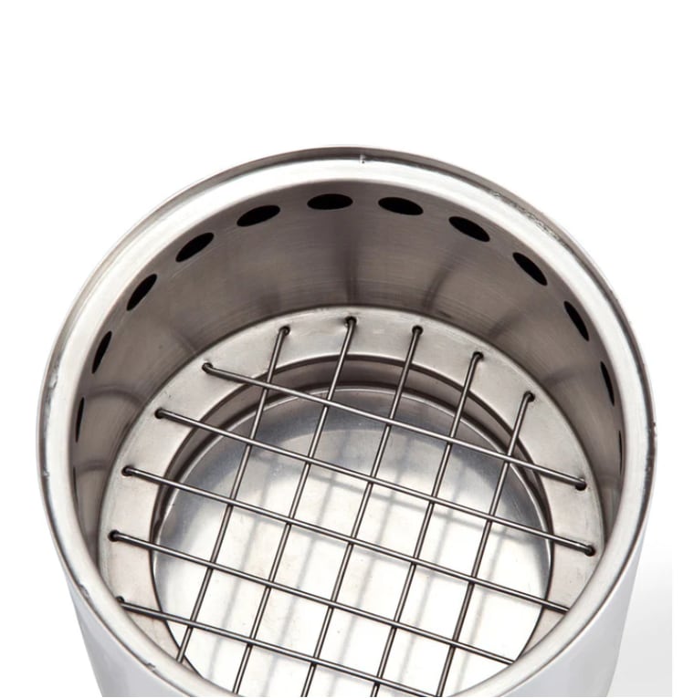 直径約13cmのコンパクトモデルで、小枝や割り箸サイズの薪などが焚べやすく、お湯を沸かしたり簡単な調理を行うのに丁度いいサイズ感です。