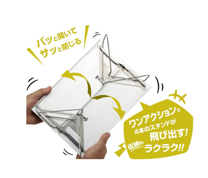 独自構造によりパッと開くだけのワンアクションで4本のスタンドが飛び出す
