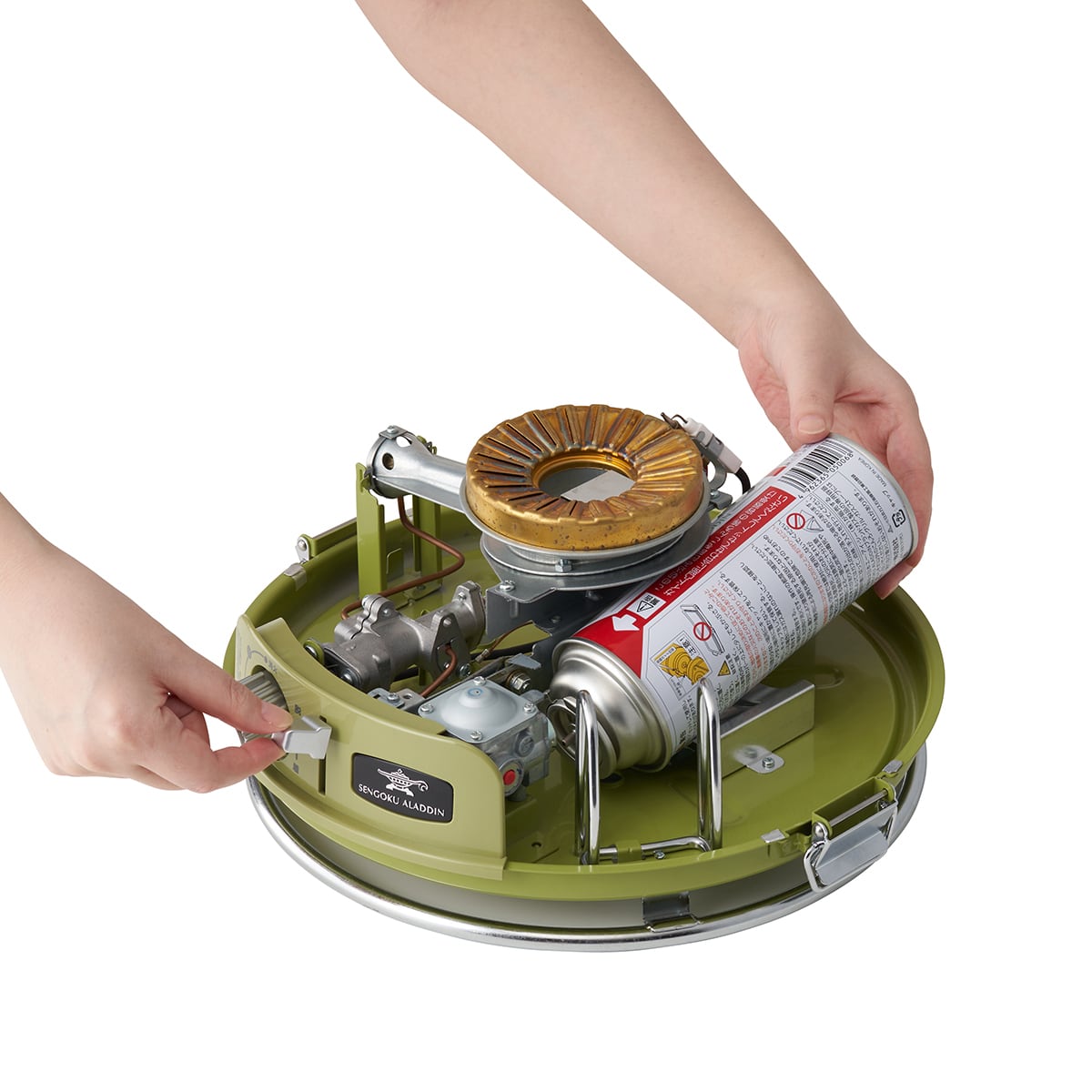 アラジンのブルーフレームヒーターをモチーフにしたコンパクトタイプのガスストーブ。