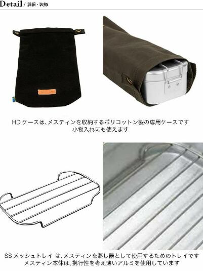 このメッシュトレイを燻製に使用したり、水気の少ない状態で調理したりするとメスティン本体が熱損することがありますのでご注意ください。