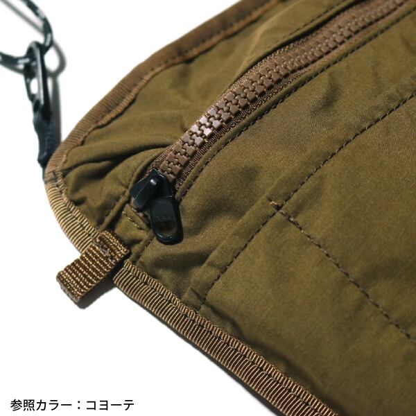 タキビシリーズでおなじみの難燃素材を採用したサコッシュはカラビナを使ってタキビアノラックパーカーにジョイントできます。