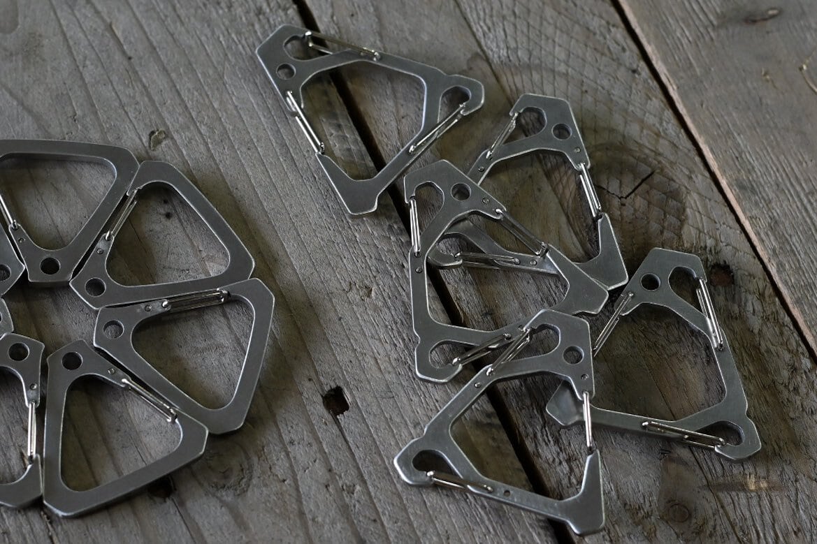 ガイロープに引っ掛けてギアを吊るしたり、鍵を種類別に付けるなど。
